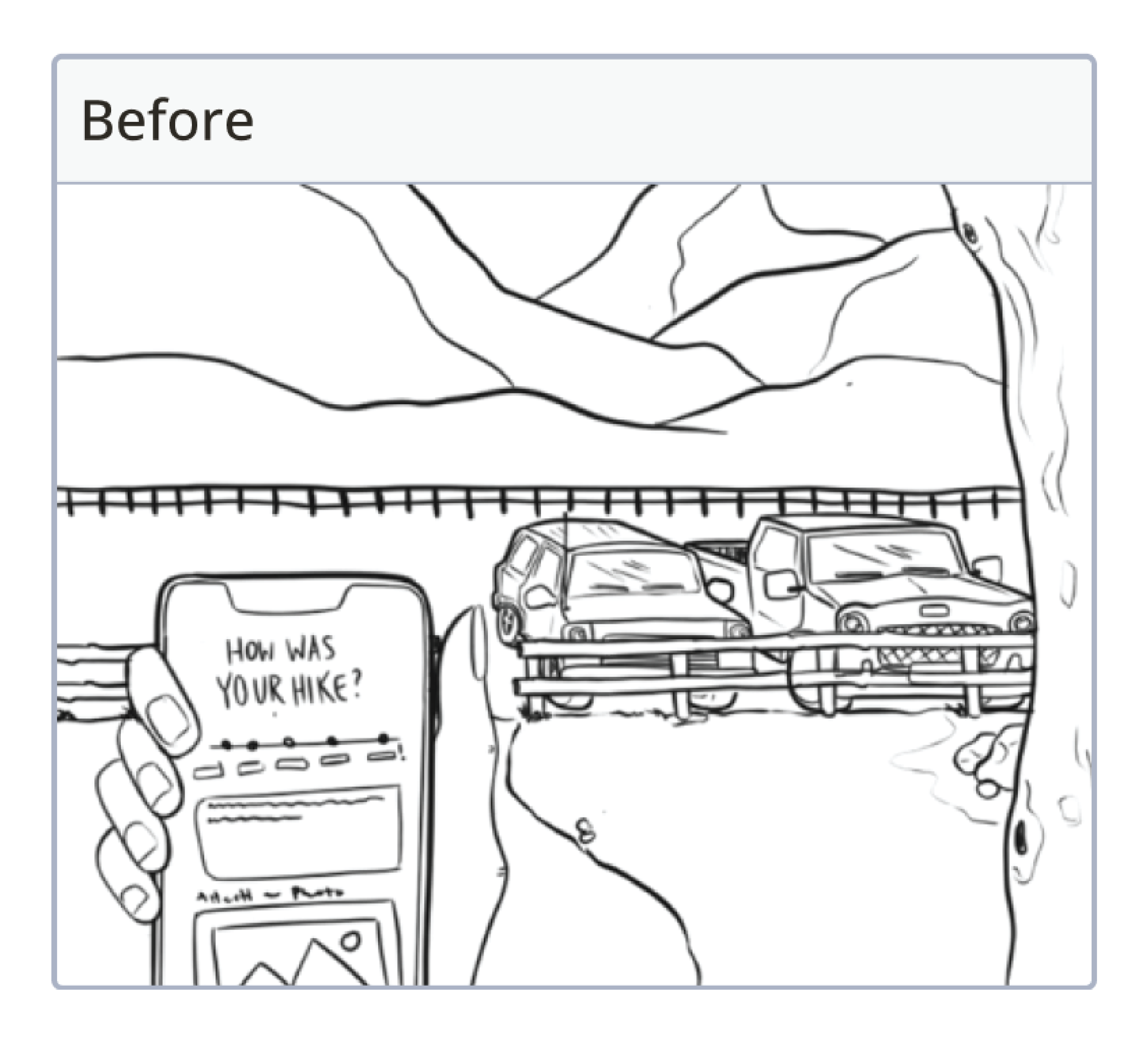 After completing our customer journeys, we started writing scenarios to incorporate seamless interactions that addressed the hiker’s needs before, during, and after they finished a trail hike.