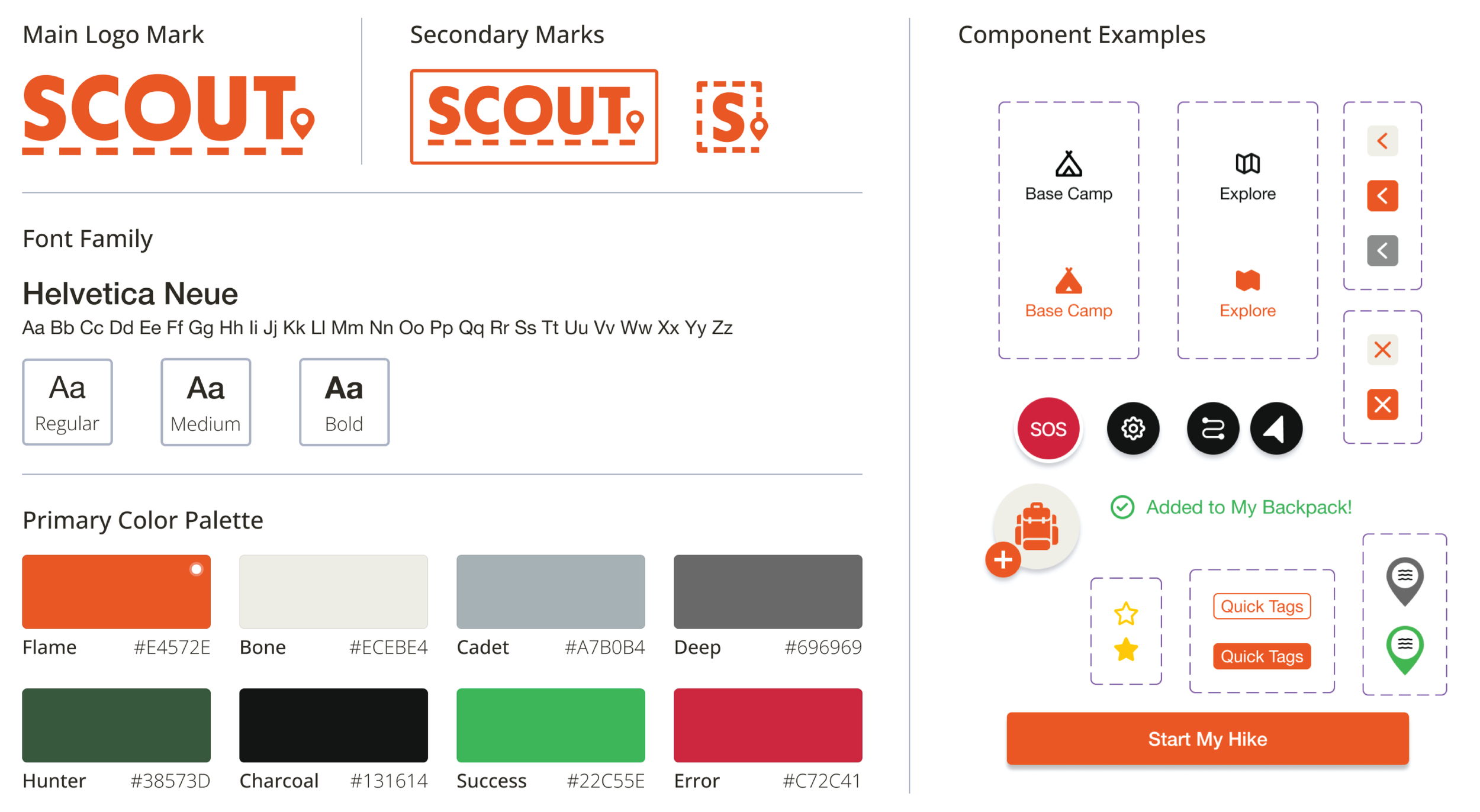 As some of our team members were working on the Low Fidelity Prototype, Sarah and I nourished the design system to reflect the mission of Scout. We ended up choosing Helvetica Neue Typeface as a nod to Massimo Vignelli’s designs for the National Park Service. We also then focused on making sure our colors were limited to focus on contrast and accessibility.