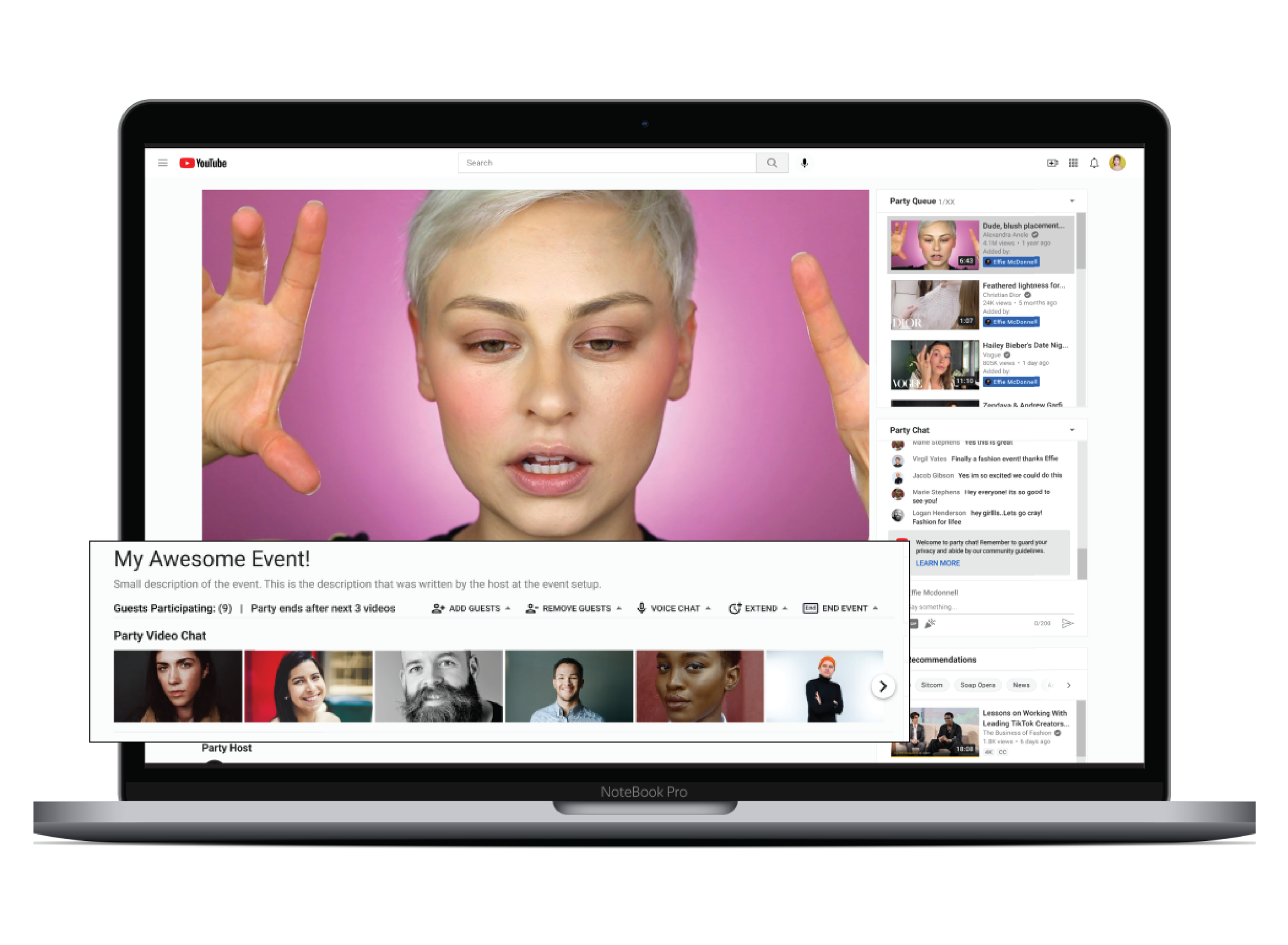 YouTube Together needed a way for a host to still control an event while allowing guests’ participation in the party.