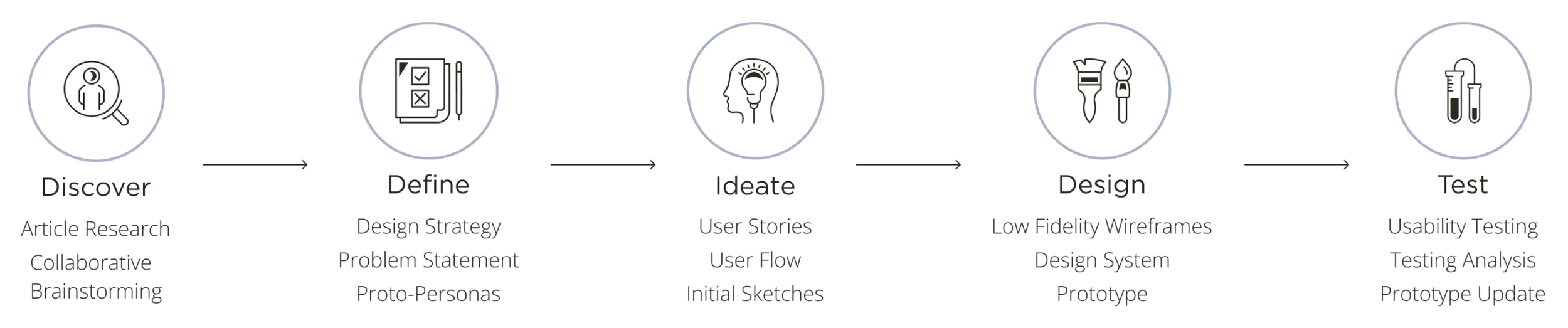 Assumptions & objectives, proto-personas, user stories, user flows, user testing, final presentation